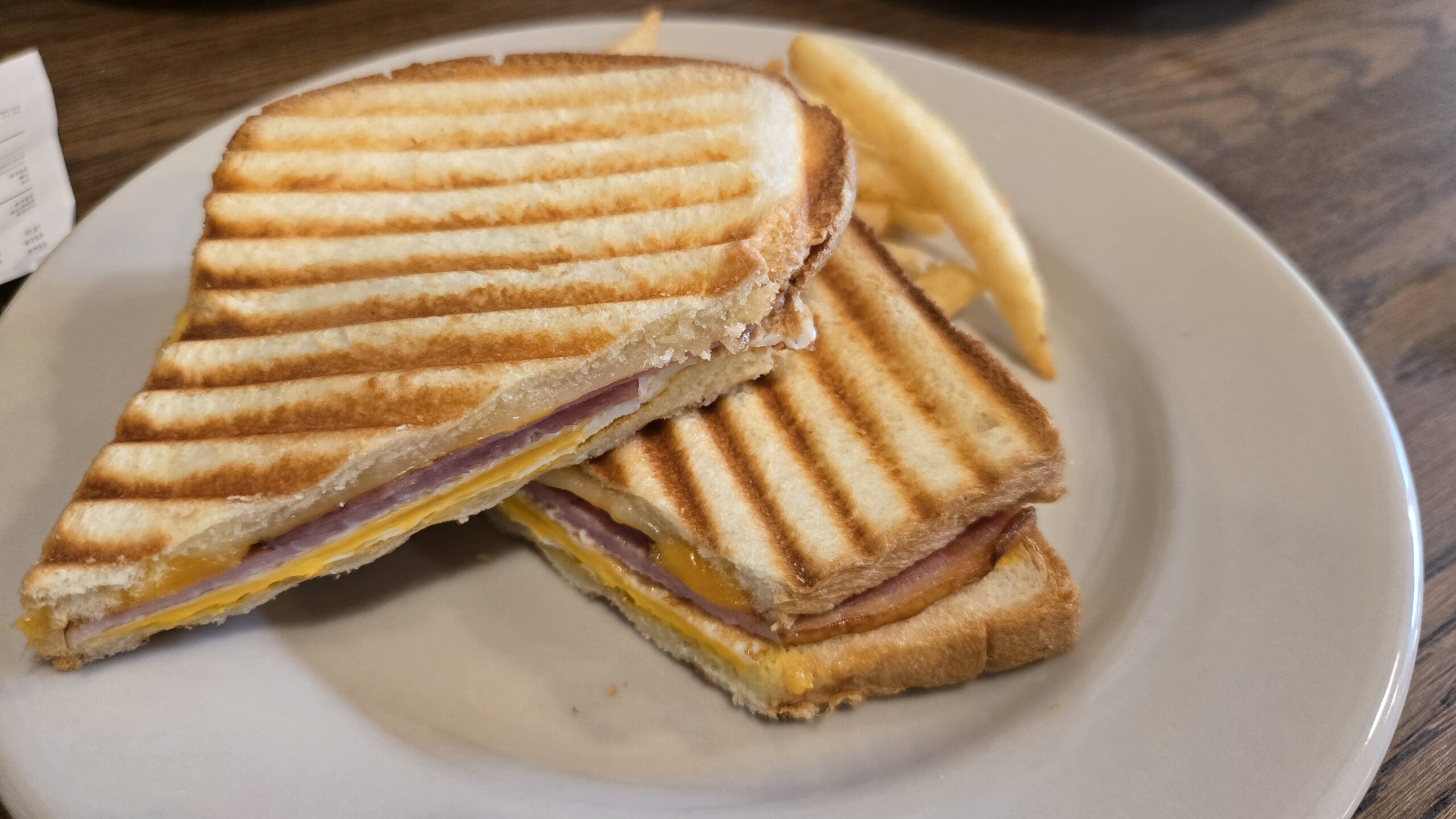 名前の通りですが、ハム、卵、チェダーチーズをサンドした軽めの一品。シンプルでおいしい。