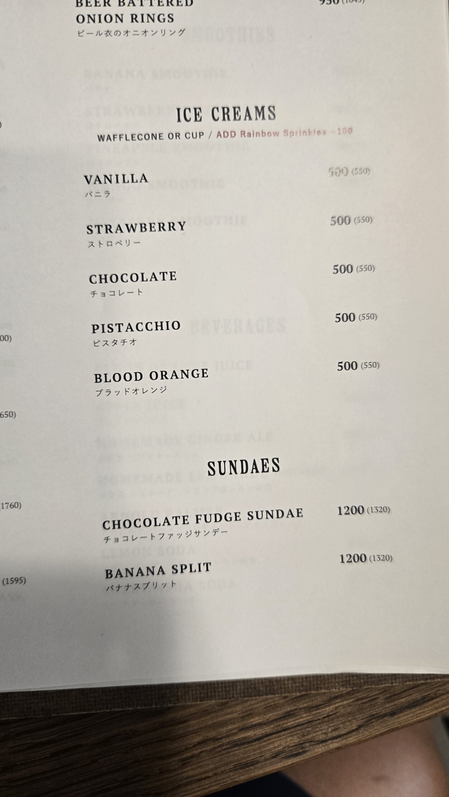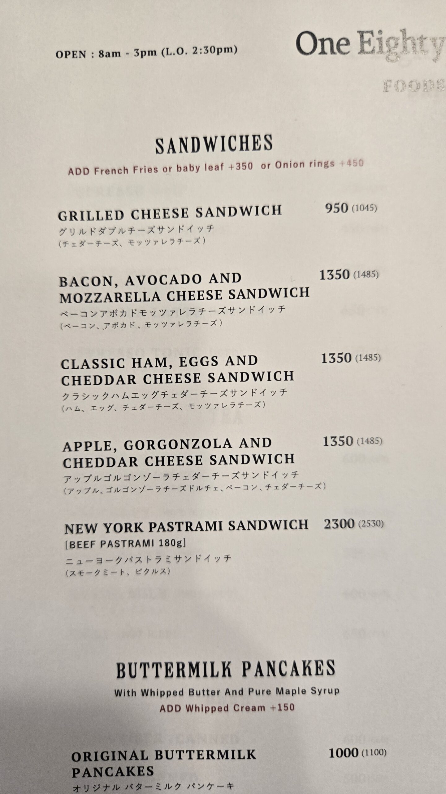 食事系はサンドイッチ、フライ、パンケーキなどカフェの定番が並び、オリジナルのアイスクリームやサンデーもうまそう!