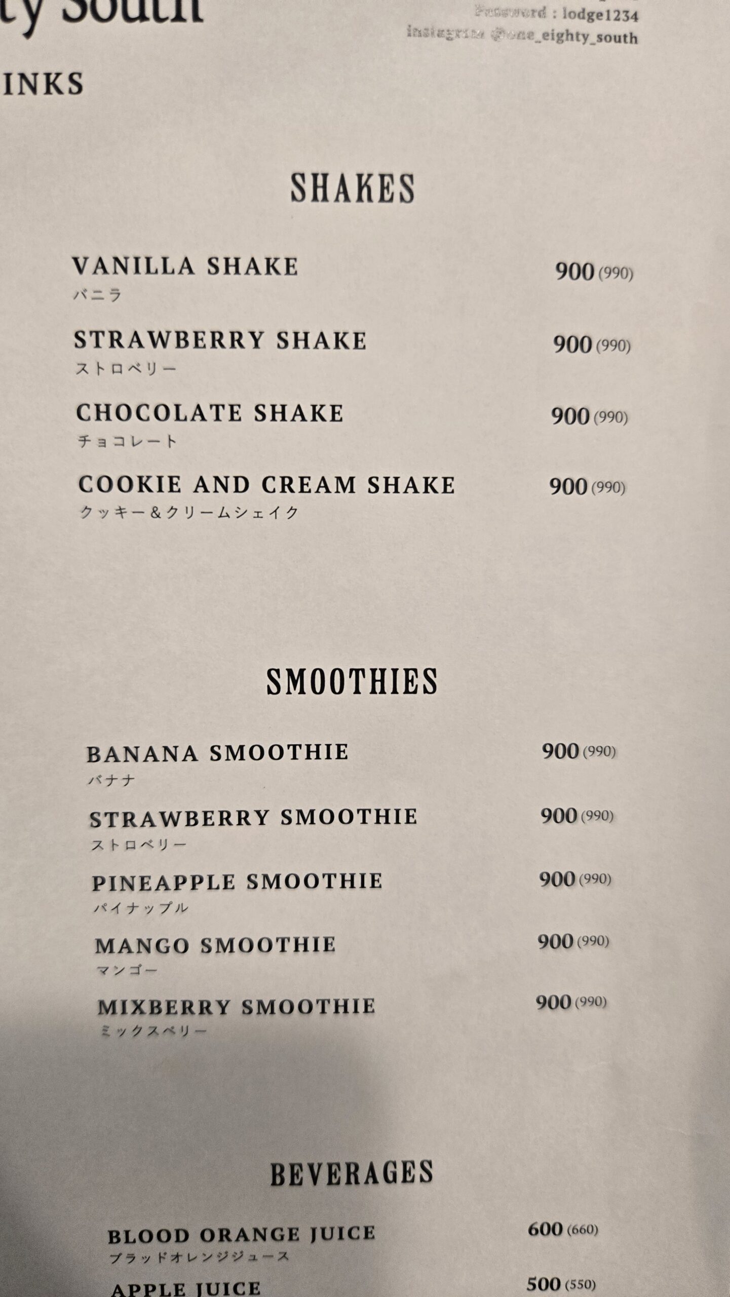 | 店舗名 | One Eighty South ワン・エイティー・サウス |
